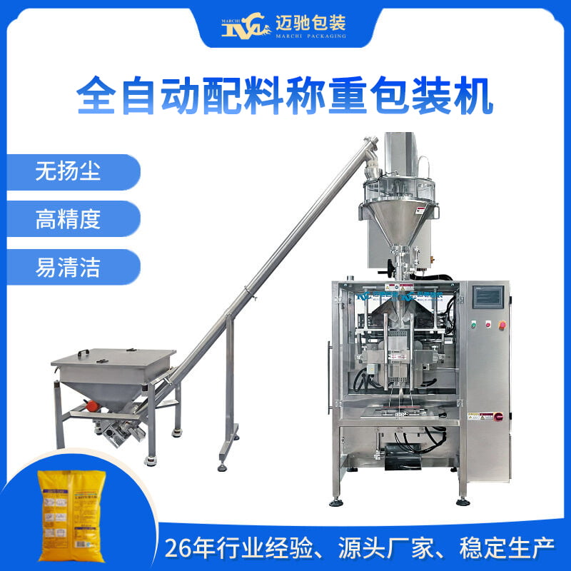 迈驰包装设备是一家26年全自动食品配料称重包装机机械生产工厂,可包装调味品、添加剂、防腐剂、着色剂、稳定剂、增稠剂、营养强化剂、蛋白质粉等食品粉料,您需求的全自动配料称重包装机、食品配料包装机械生产厂家可以点击详情了解更多。